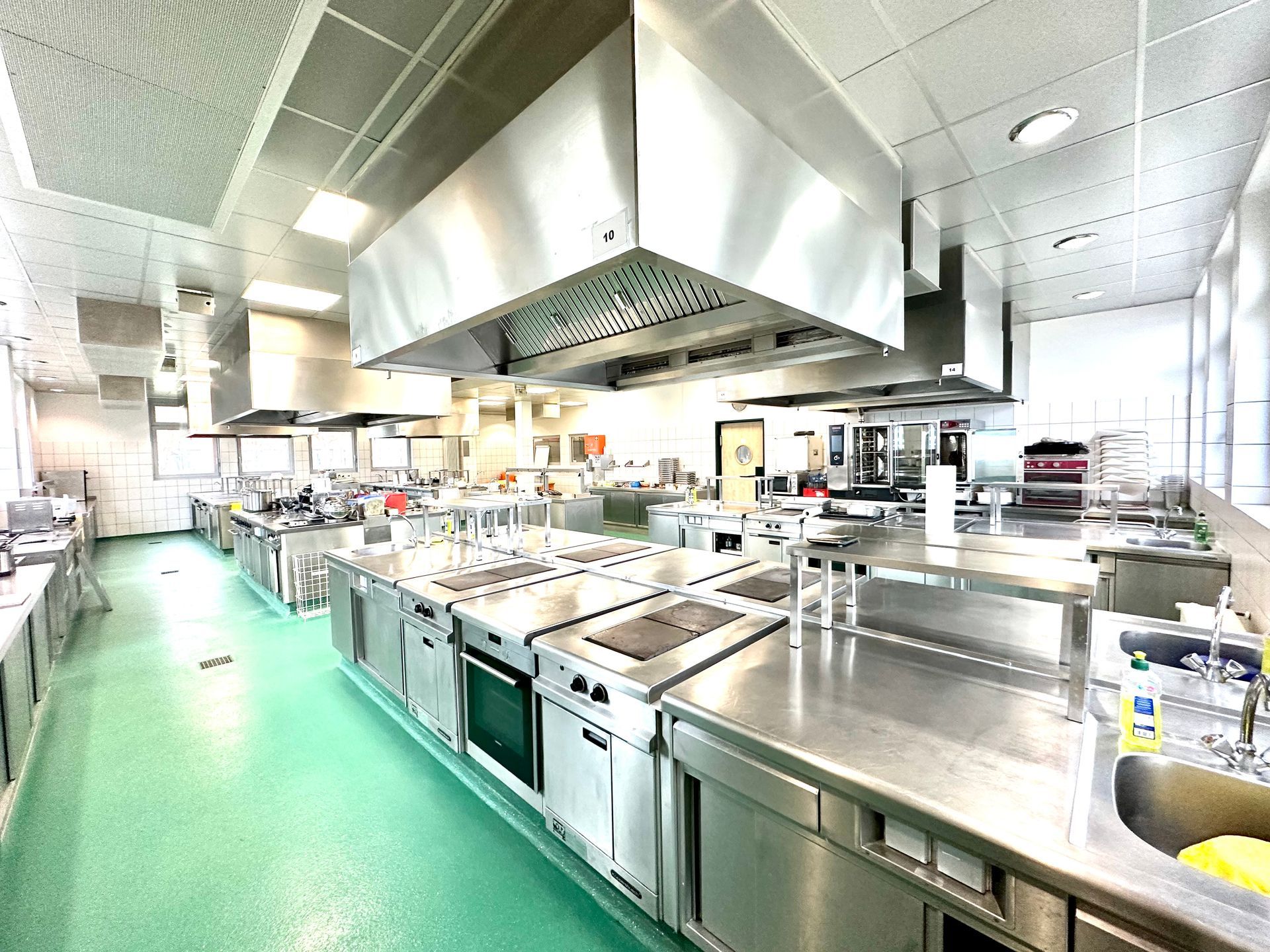 Für die Stärkung des Praxisbezuges in der theoretischen Ausbildung können eine großflächige und professionell ausgestattete Lehrküche und ein Lehrrestaurant genutzt werden.